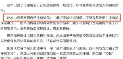 20吨黄金是什么概念?按体积算,差不多一立方米见方的纯金块,重得能把普通民宅地板压穿。可就是这种明显反常识的说法,当年传得满网飞。2015年1月,本山传媒正式发声明,称这是无中生有、凭空捏造,并表示要追究造谣者的法律责任。谣言的热度刚降下来,移民的旧饭又被别有用心的人炒了起来。移民这事儿,前前后后被传了四次。2008年,有人说赵本山移民加拿大;2012年,又说他抢在新加坡移民政策终止前办手续;2014年3月全国两会前夕,再被质疑;同年11月,又来了第四波。每一次都传得有板有眼,每一次都得本山传媒出来辟谣。2014年11月那次,起因是新加坡《联合早报》报道了赵本山妻子马丽娟的一场官司,里面写她四年前与龙凤胎子女移居本地。就这一句话,被一些媒体放大成了全家移民新加坡。